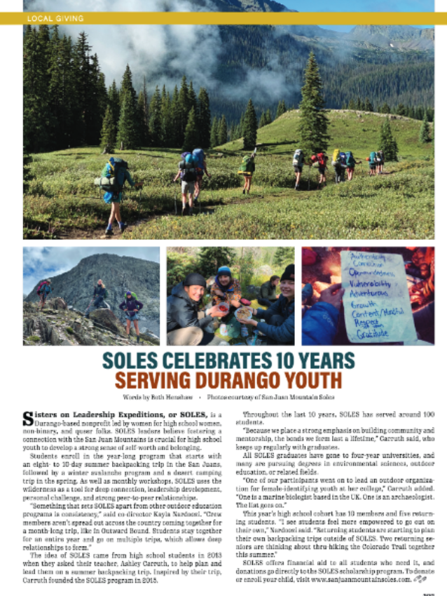 SOLES Celebrates 10 Years Serving Durango Youth in Durango Magazine’s summer 2025 issue